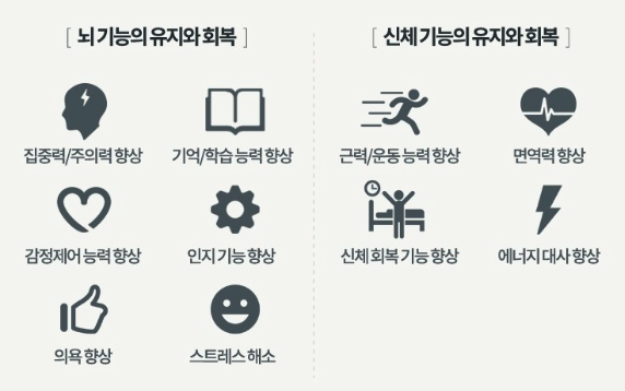- 미토콘드리아 기능 개선 → 에너지 생산 능력 UP