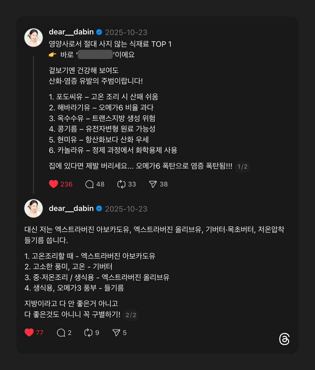제가 매번 외치던 식물성 가공유지는 피하자는 말도 받아들여졌네요..!! (꺄호~!)