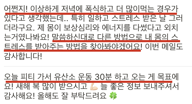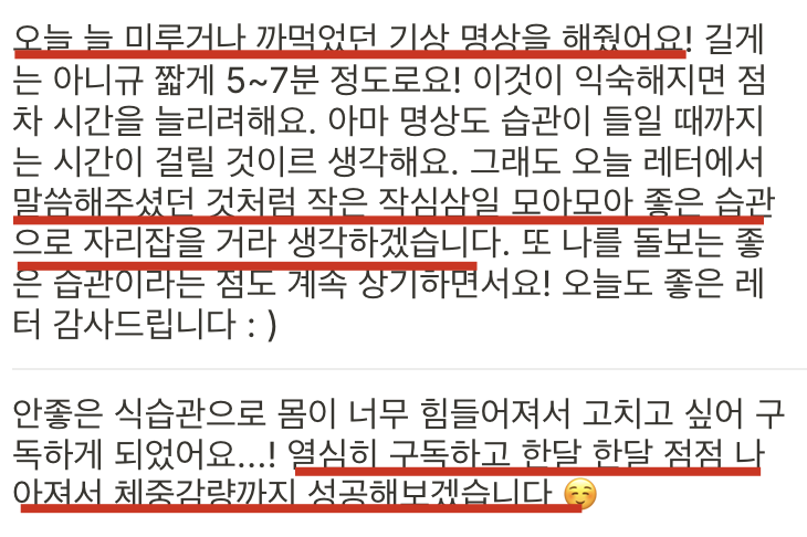 지난 레터 후기중 기억에 남는 답장이에요..💚